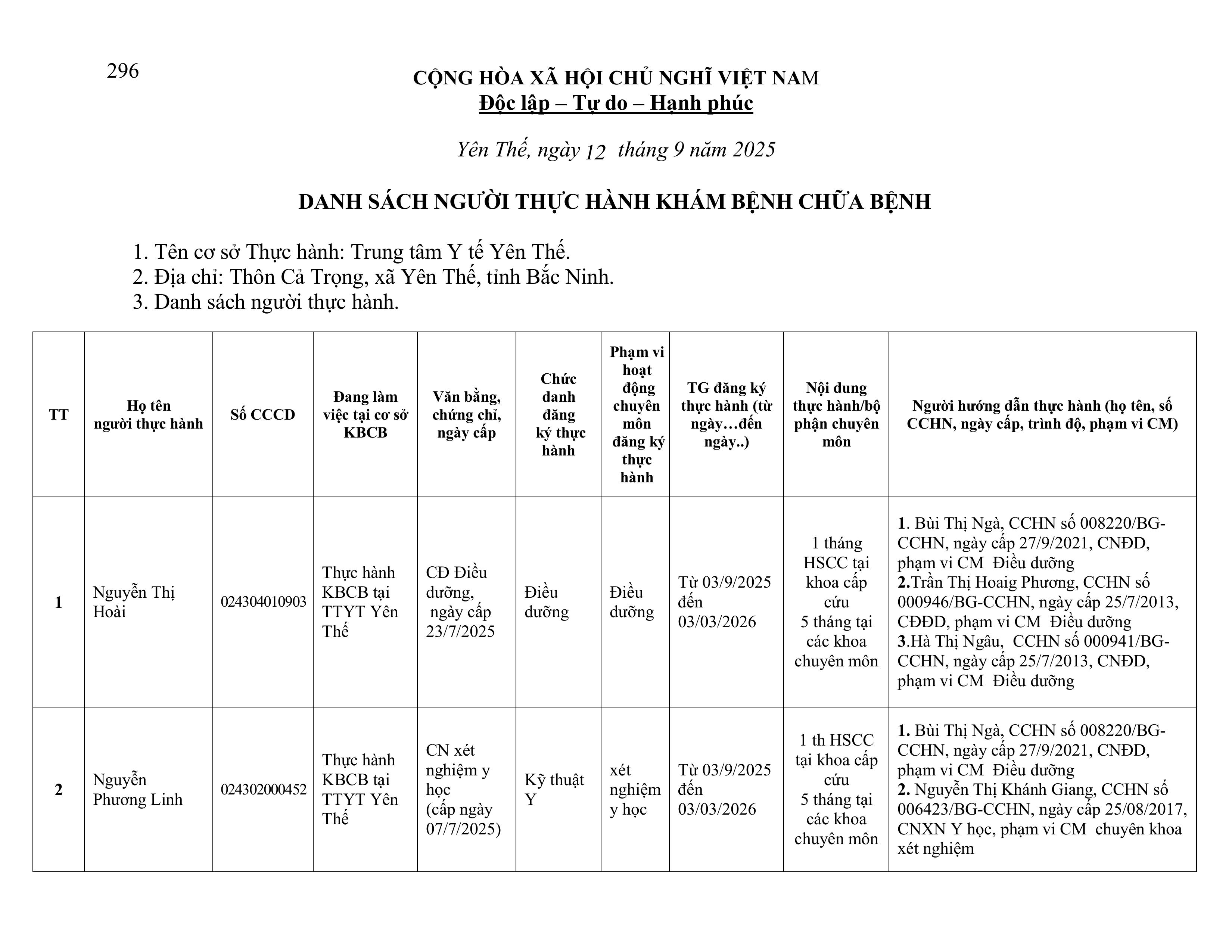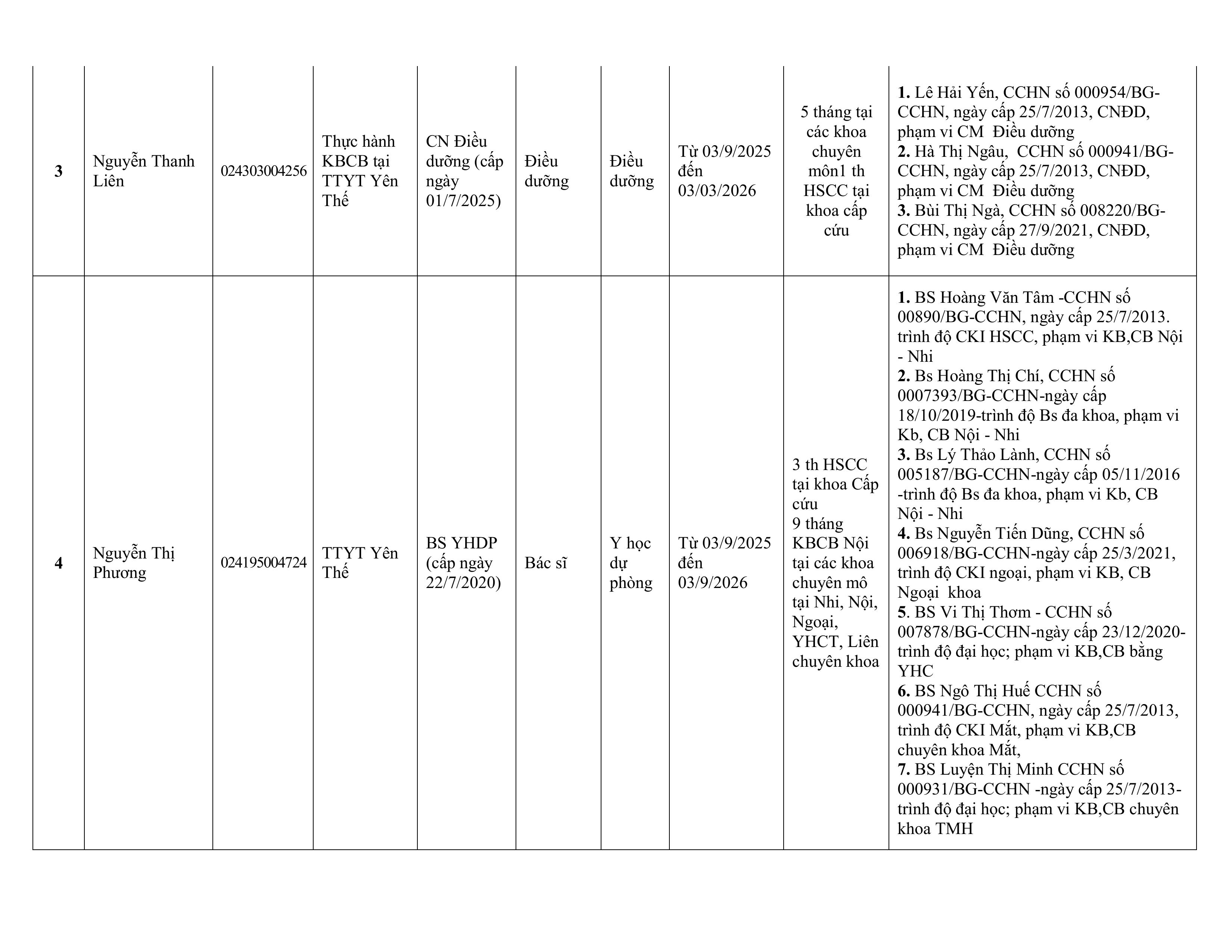 - THÔNG BÁO DANH SÁCH NGƯỜI HOÀN THÀNH QUÁ TRÌNH THỰC HÀNH KHÁM BỆNH CHỮA BỆNH TẠI BVĐK YÊN THẾ 14/01/2026