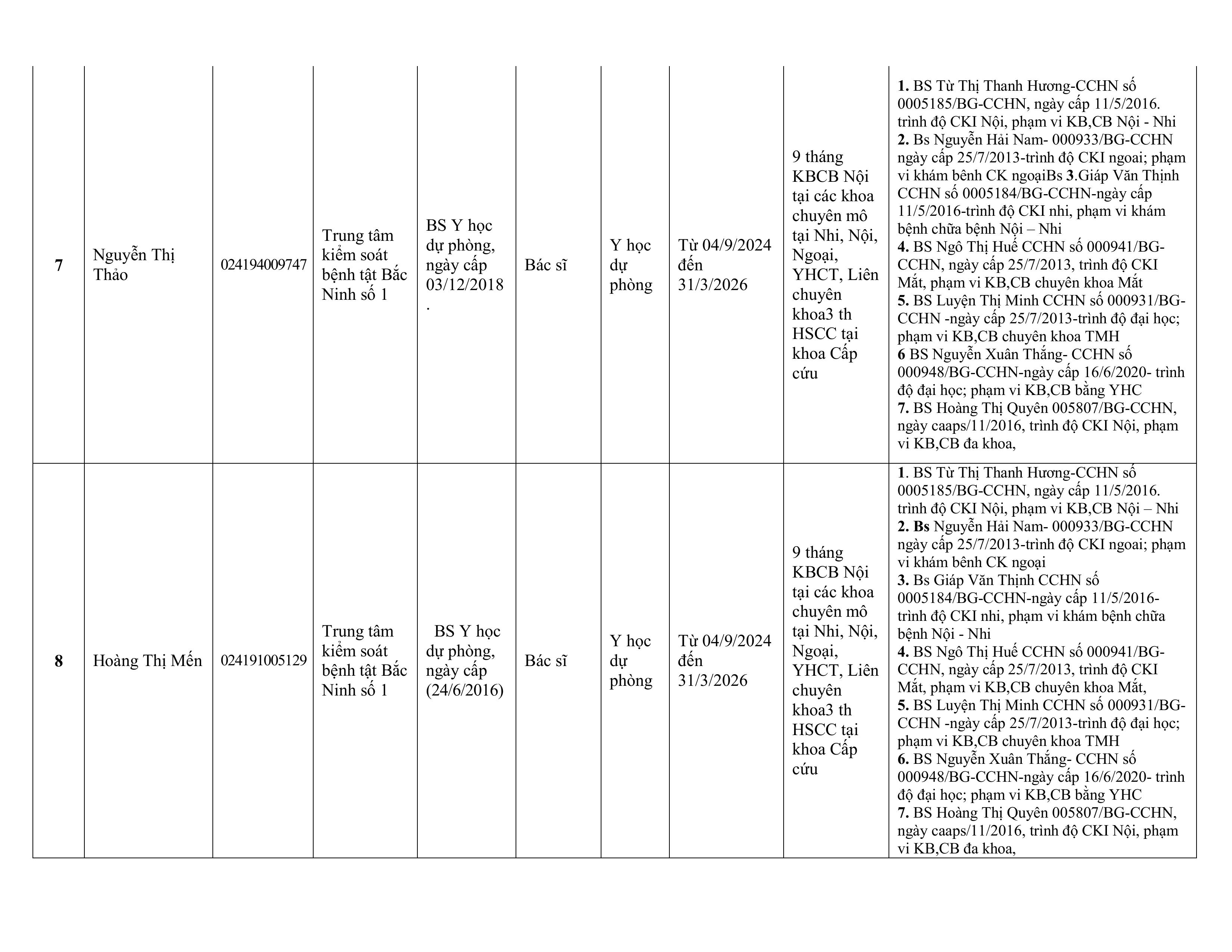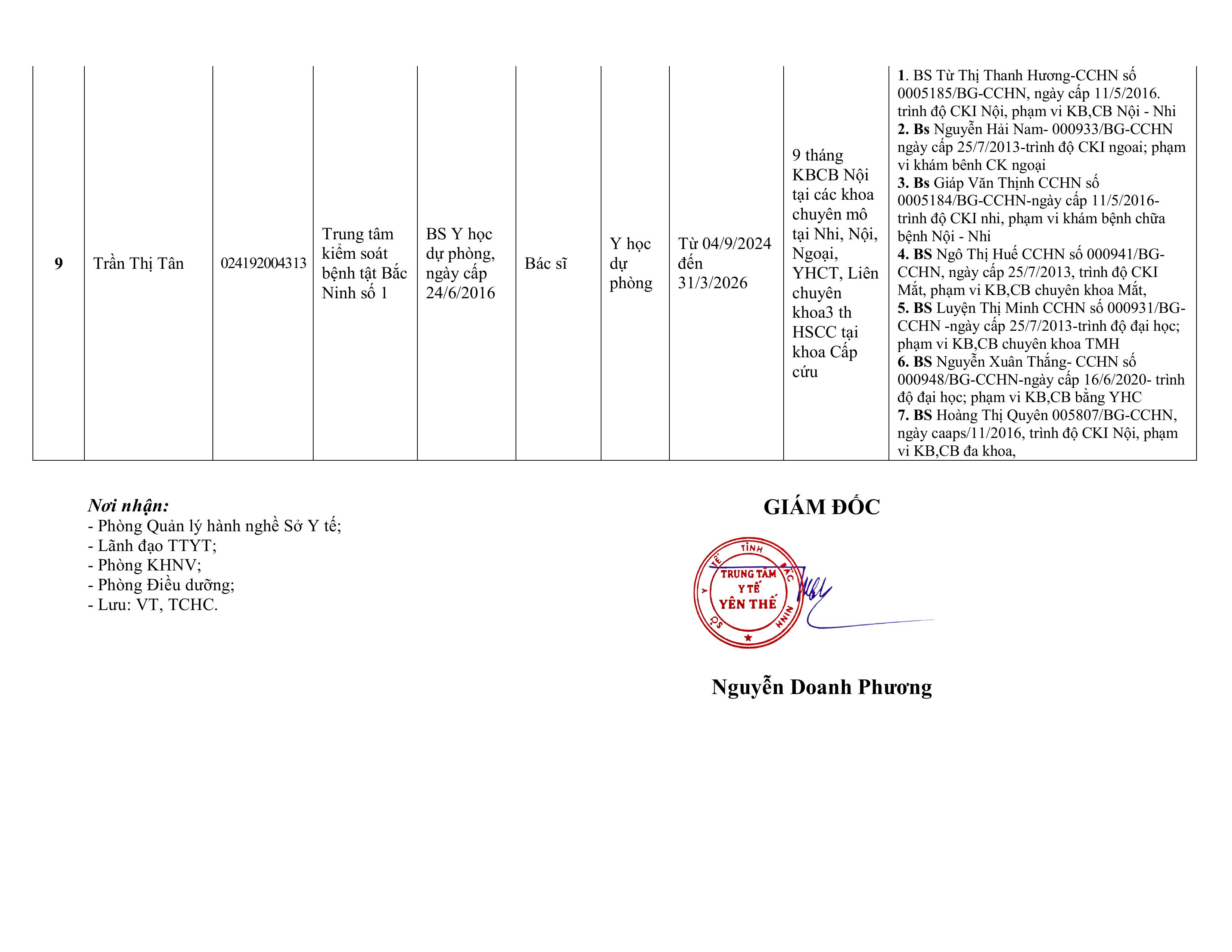 Danh sách người thực hành KCB tháng 9