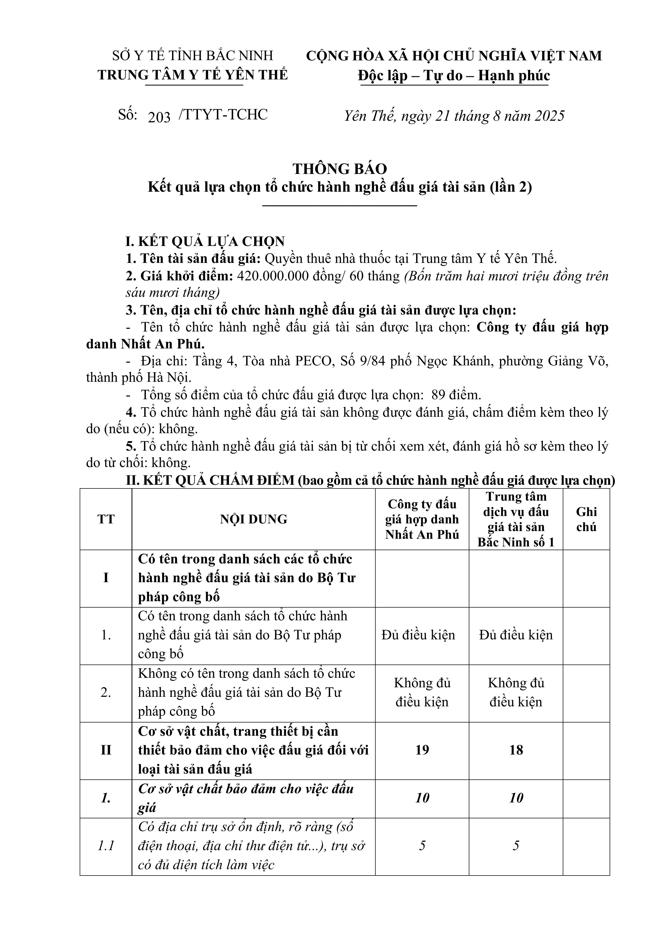 Kết quả lựa chọn tổ chức hành nghề đấu giá tài sản (lần 2)