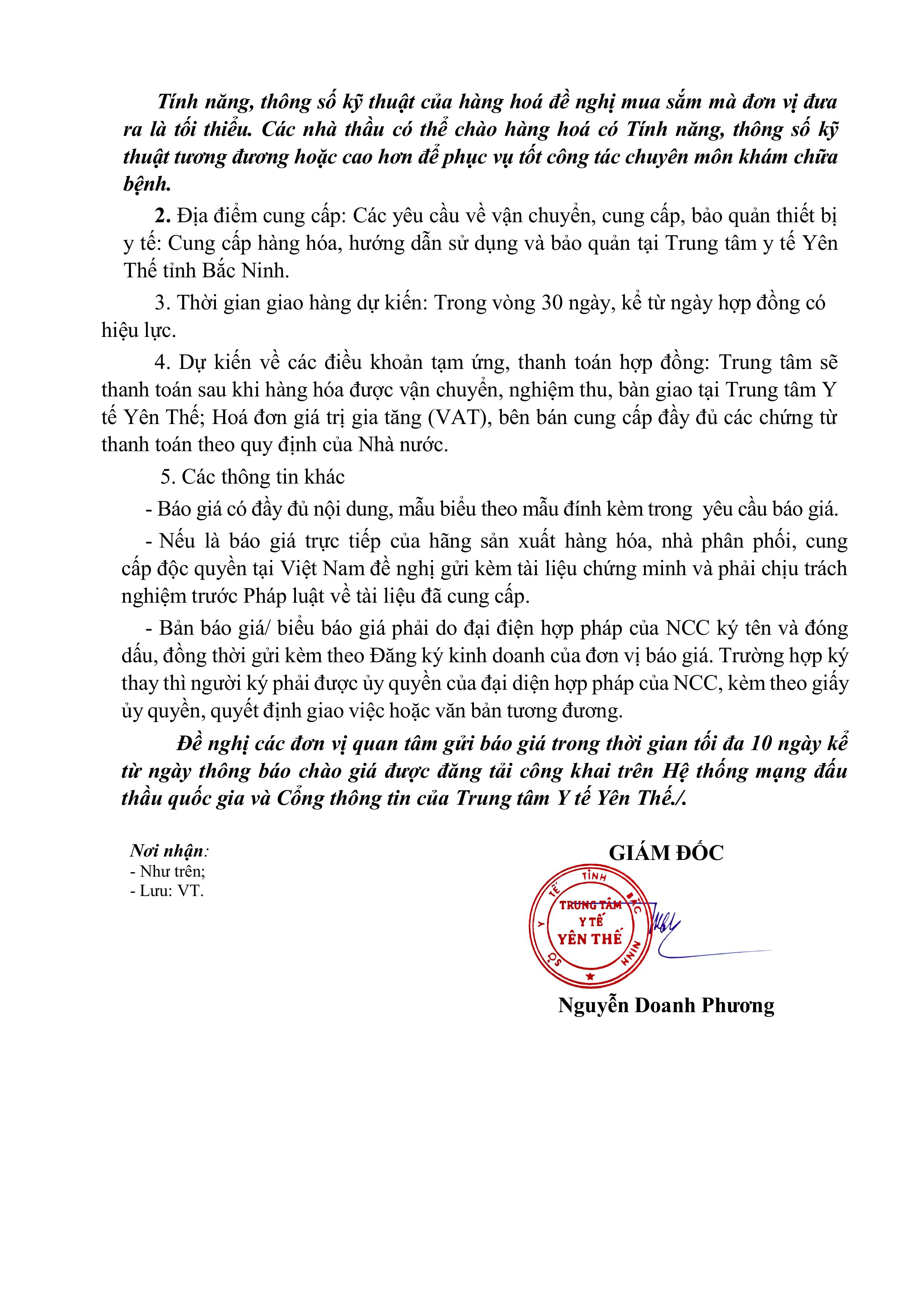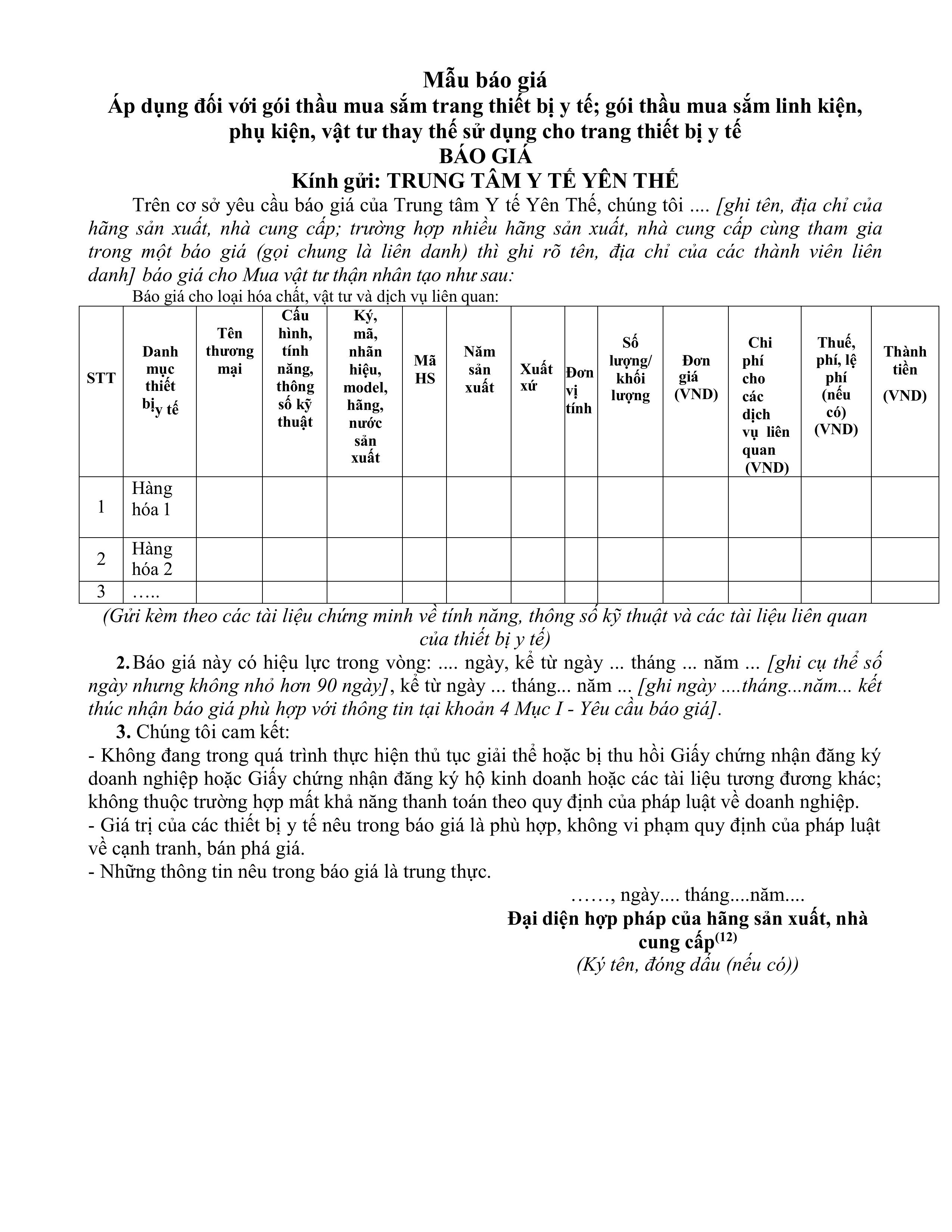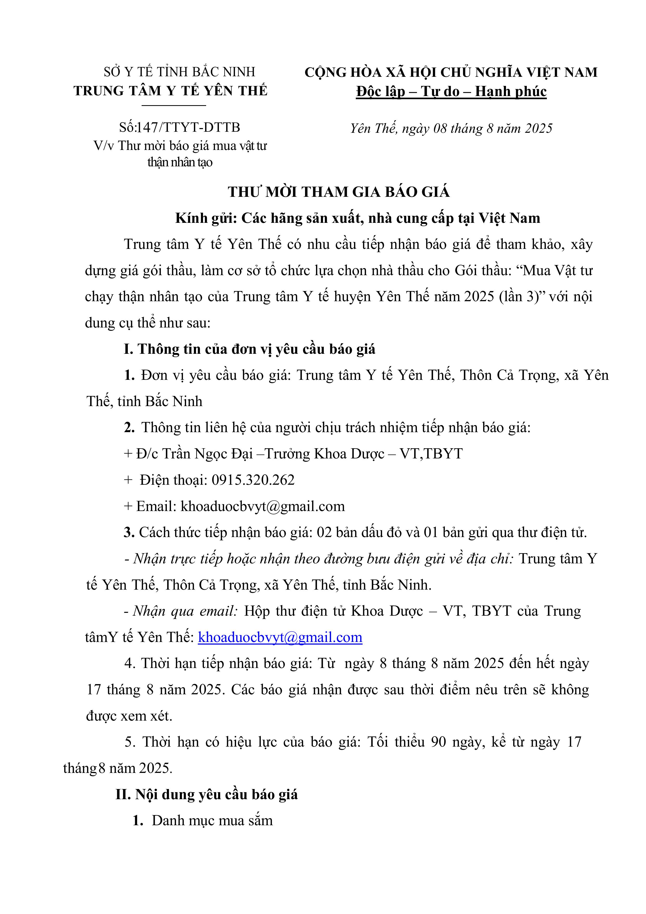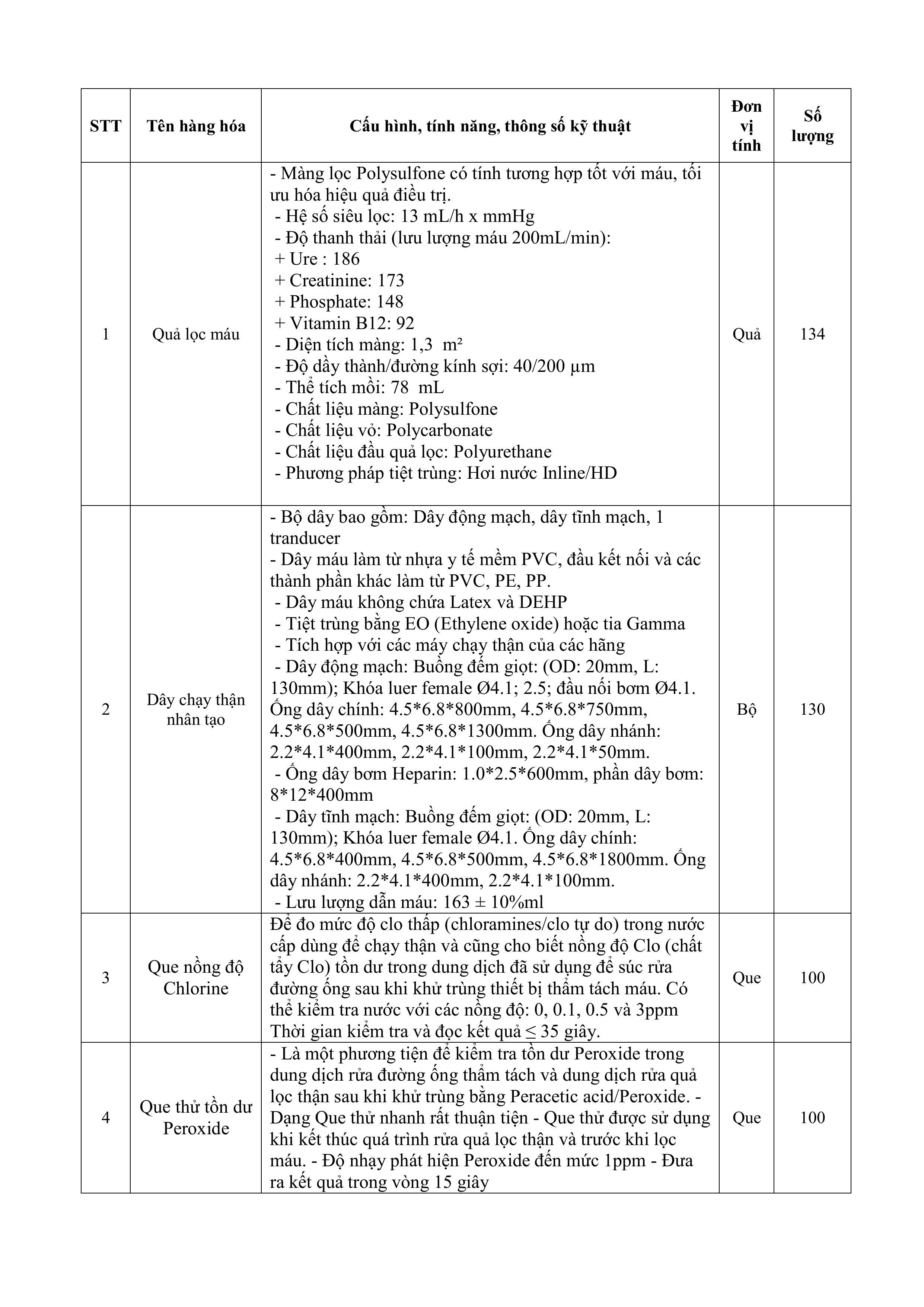 Thư mời báo giá mua vật tư thận nhân tạo