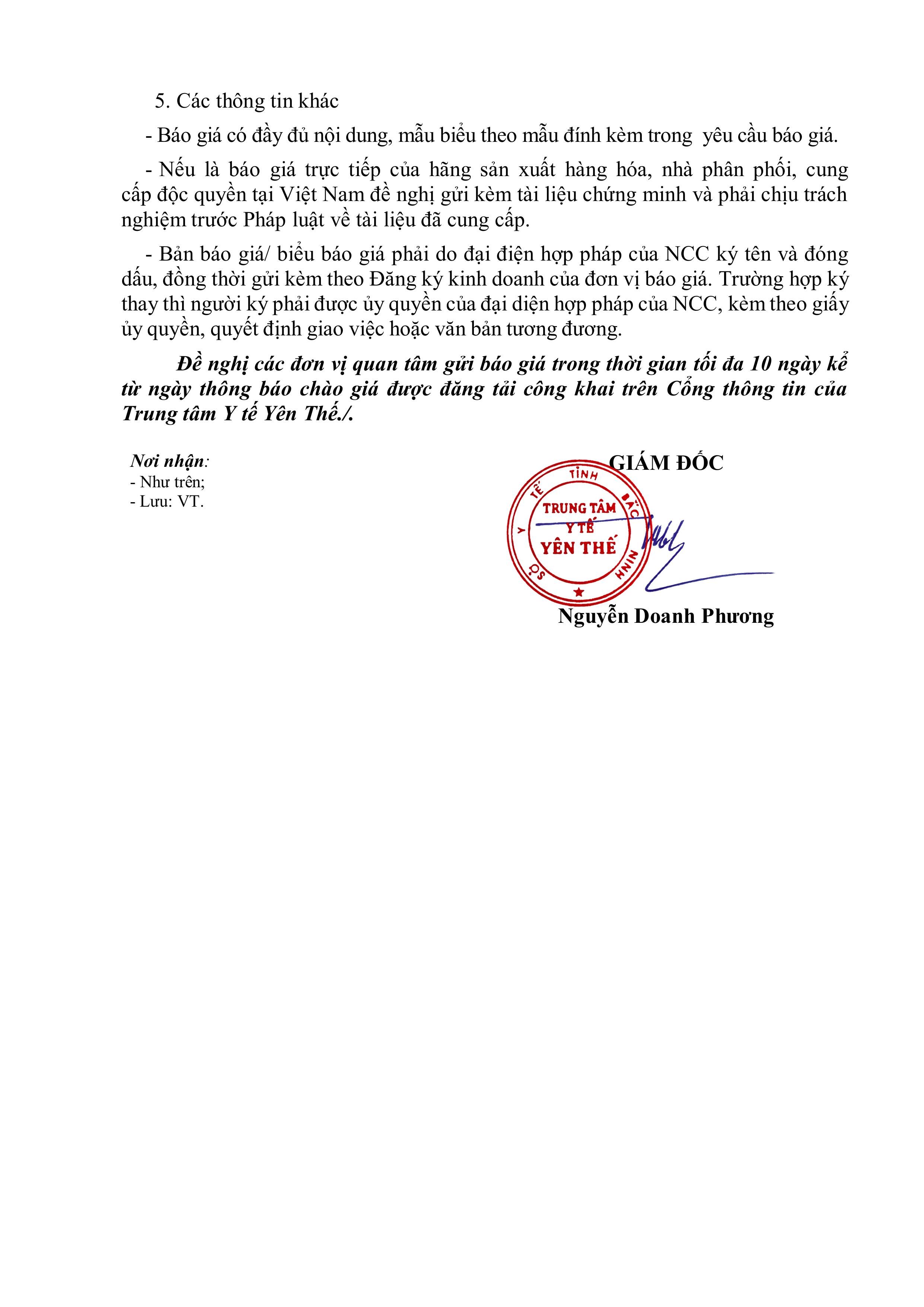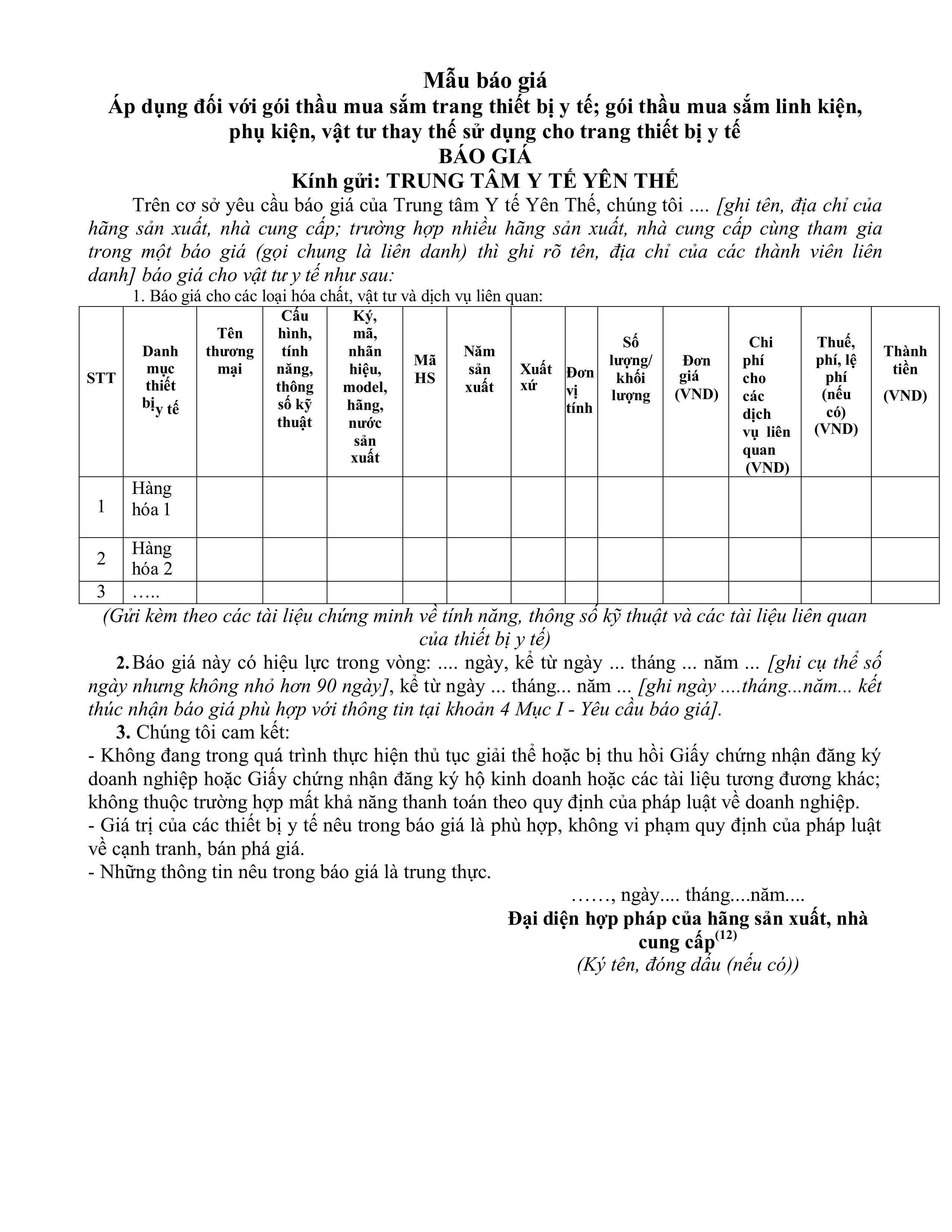 Thư mời báo giá Mua vật tư y tế năm 2025 lần 3