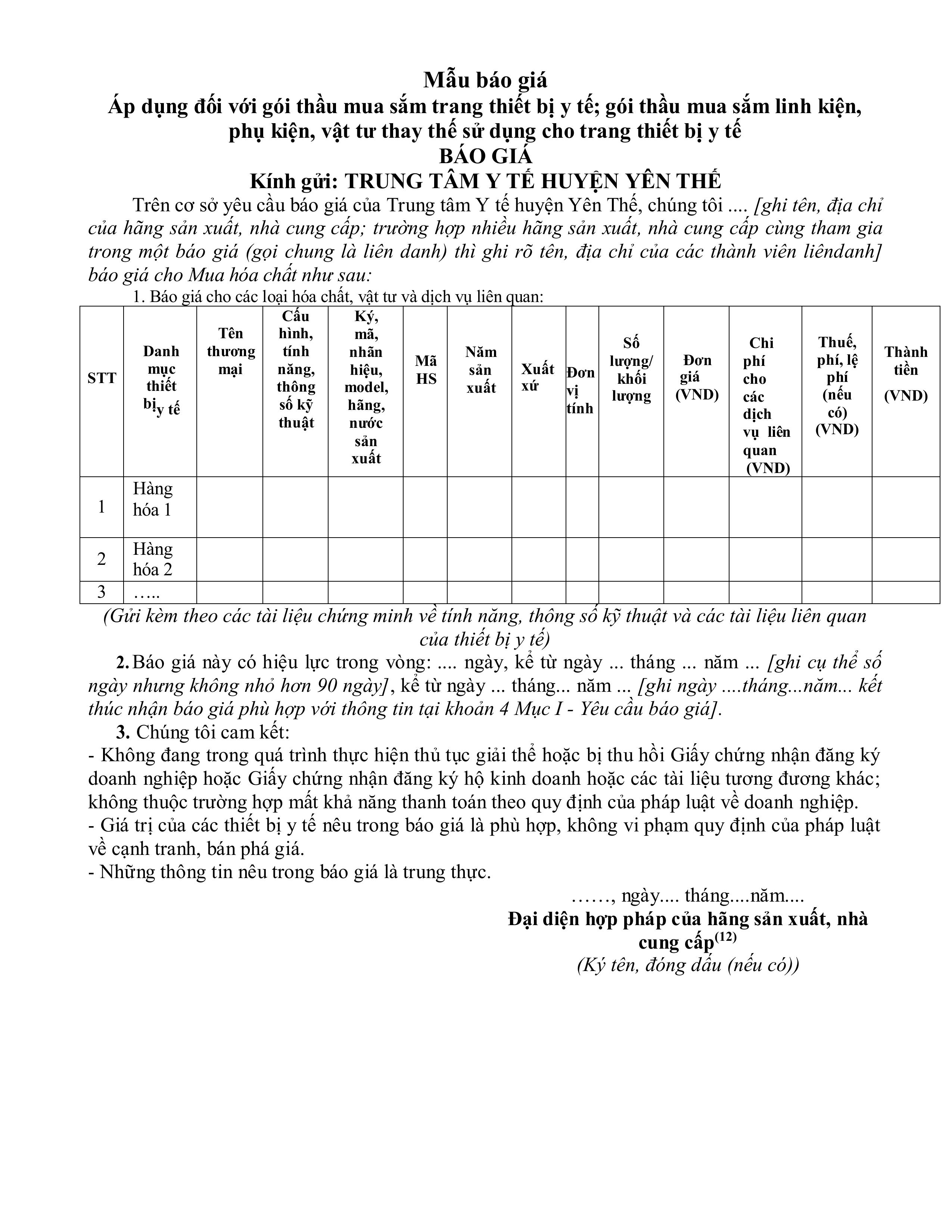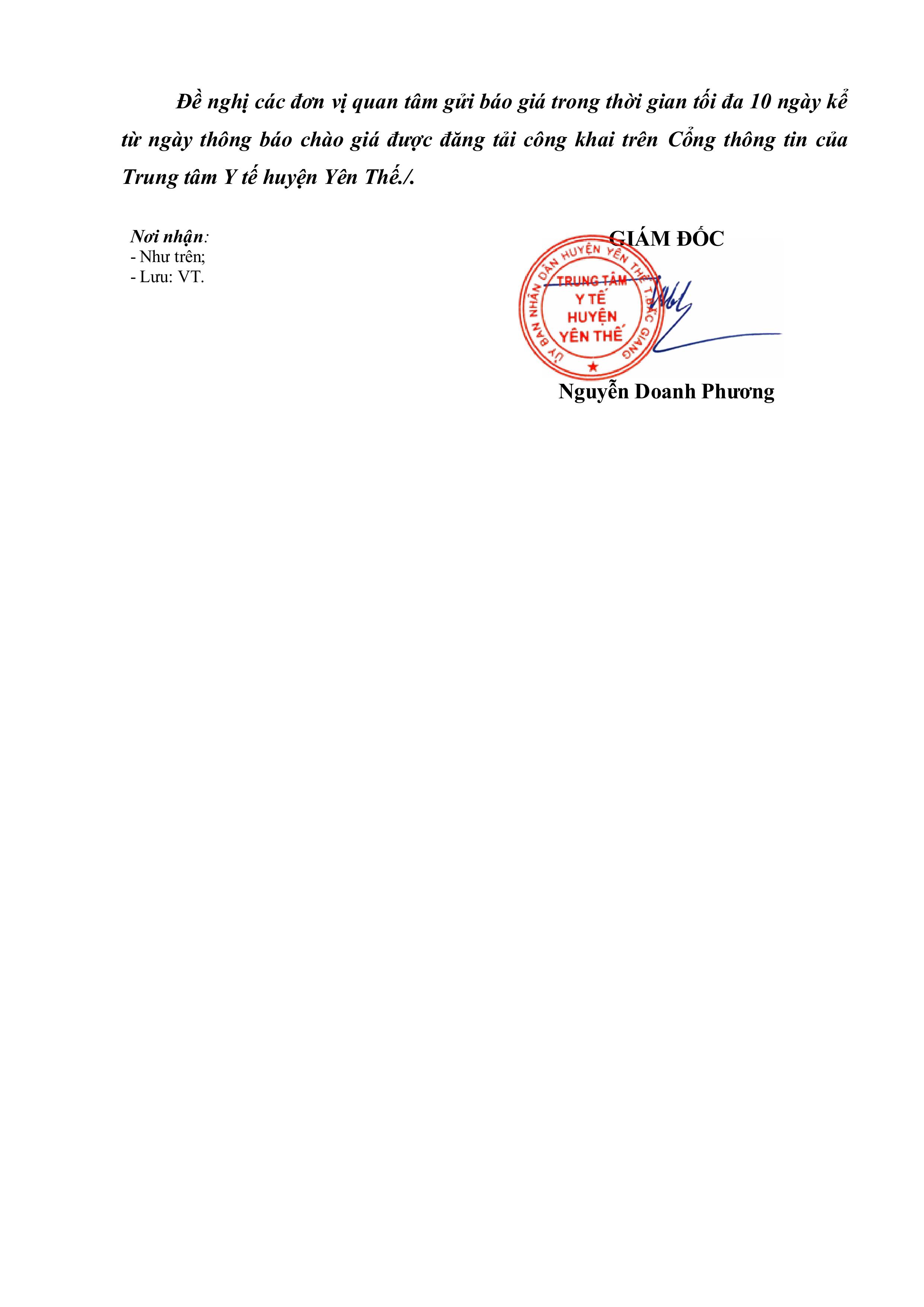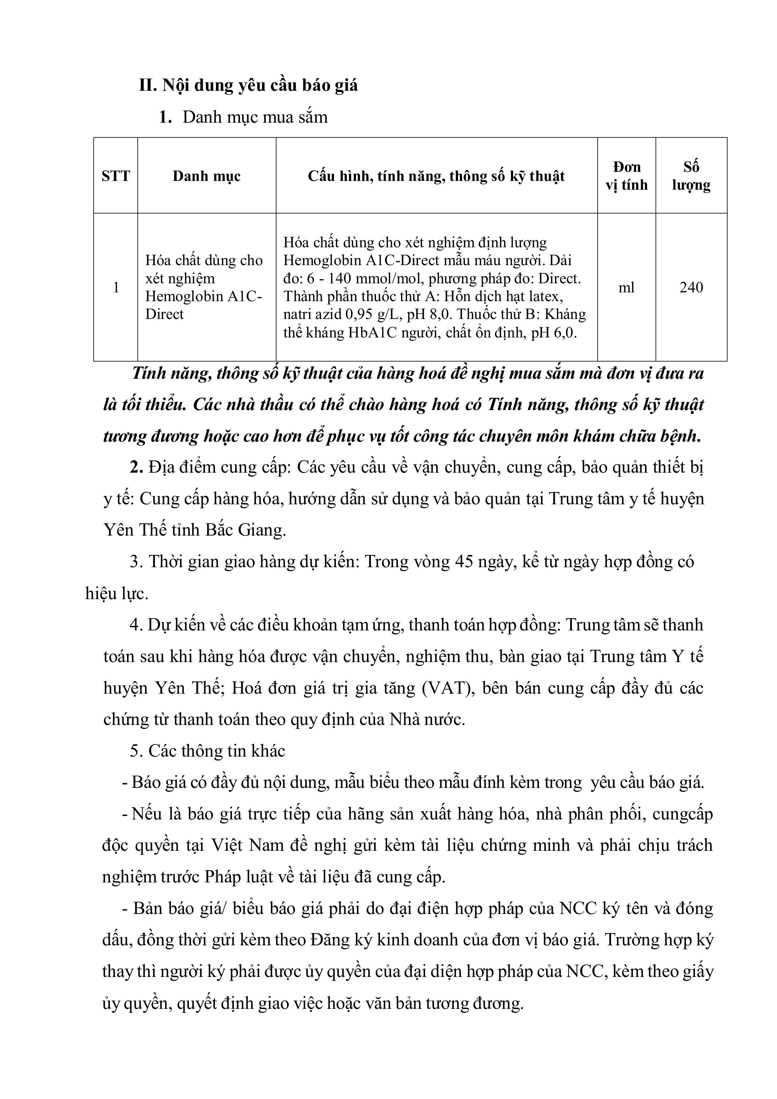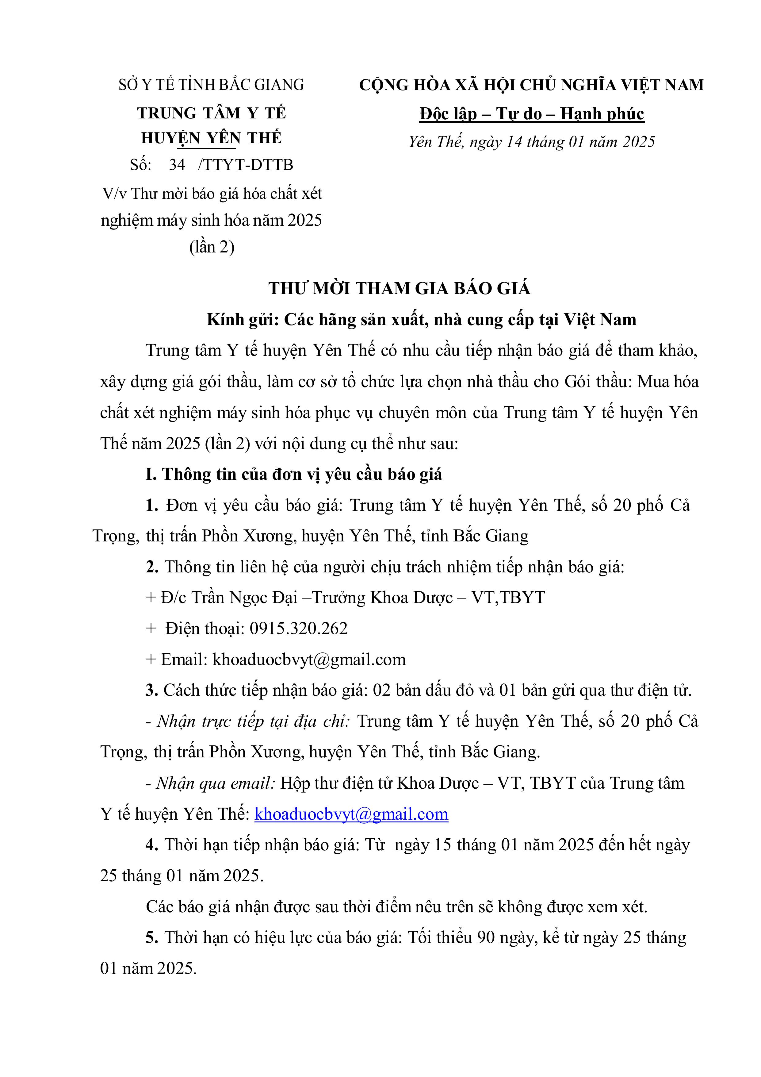 Thư mời báo giá hóa chất xét nghiệm máy sinh hóa năm 2025 (lần 2)