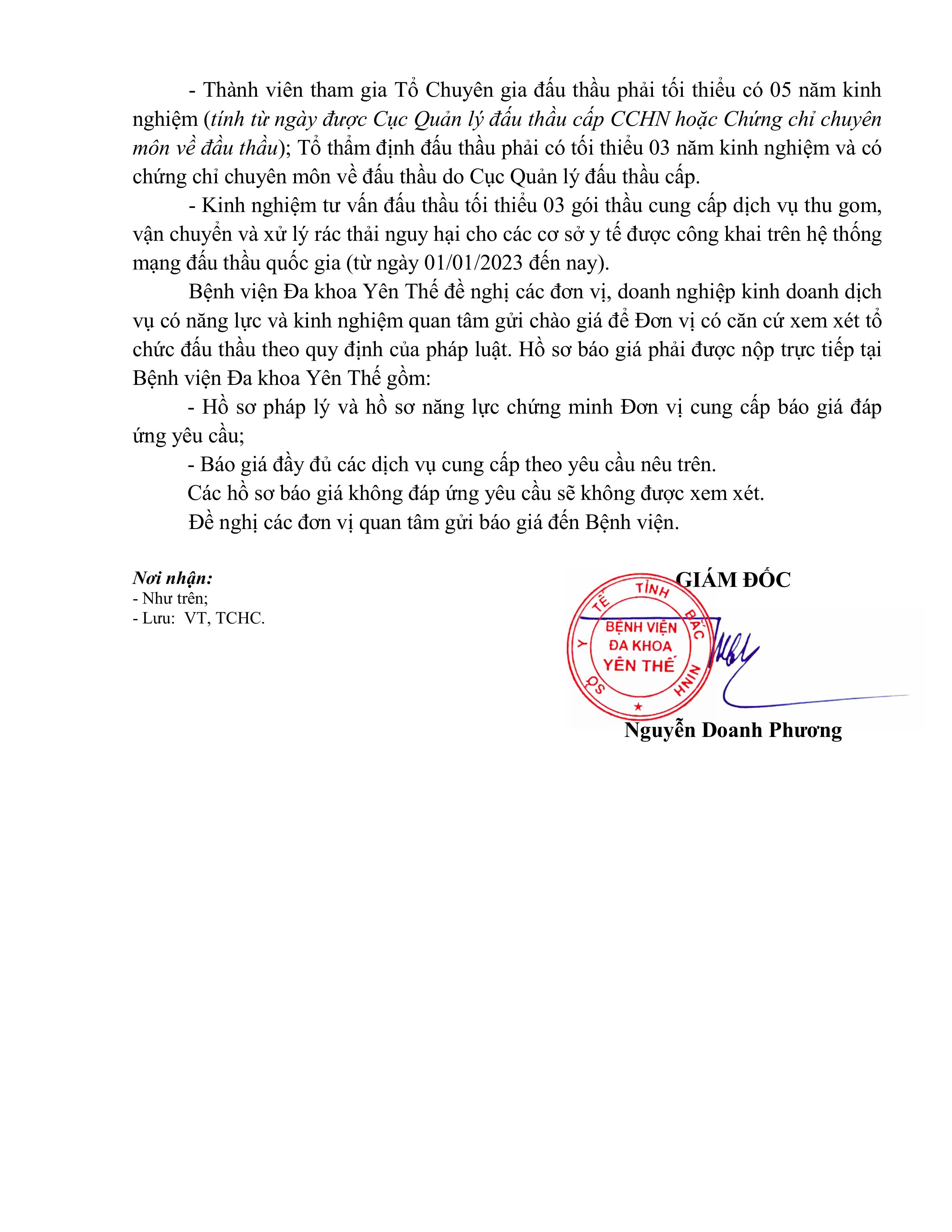 - Thư mời báo giá dịch vụ thu gom, vận chuyển và xử lý chất thải Y tê nguy hại 17/04/2026